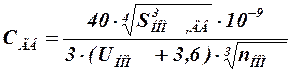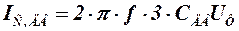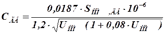 где IС, УД ― утроенная величина собственного емкостного тока одного километра КЛЭП, l ― длина КЛЭП, UФ ― фазное напряжение, f ― промышленная частота, ×CДВ ―×емкость двигателя, которая для неявнополюсных синхронных и асинхронных ЭД с короткозамкнутым ротором может быть рассчитана по формуле