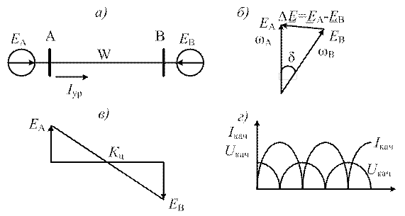 а, б, в и д – трехфазное, двухфазное, однофазное и двухфазное на землю КЗ;