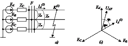 При построении векторной диаграммы (рис. 1.16, б) целесообразно принять за исходную точку A. Напряжение неповрежденных фаз