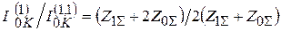 Двухфазное КЗ на землю в сети с глухозаземленными нейтралями K (1,1) также характеризуется появлением слагающих нулевой последовательности. В месте металлического КЗ ток прямой, обратной и нулевой последовательностей при условии