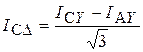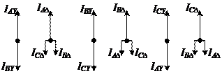 . Соотношения для токов I Δ и I Y можно получить, исходя из первого закона Кирхгофа для узлов a, b, c:
