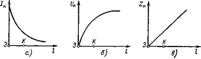 Рис. 1.17. Зависимости электрических величин от места металлического КЗ (т. K)