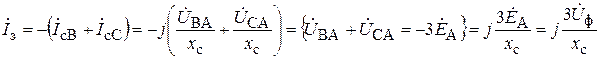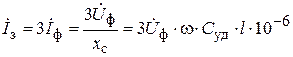 Величина тока I з зависит от величины напряжения сети и емкости фаз и может быть подсчитана по формуле: