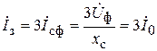 Таким образом, ток I з равен утроенному значению нормального емкостного тока фазы. Ток I з отстает от напряжения U н на 90°.