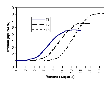 Рис. 2.1. S-образная кривая жизненного цикла технологий Т1 - Т3.
