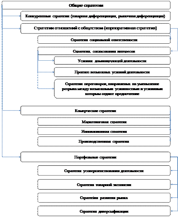 Вышеприведенные классификации стратегий за разными критериями дают представление о разнообразии направлений деятельности предприятий.