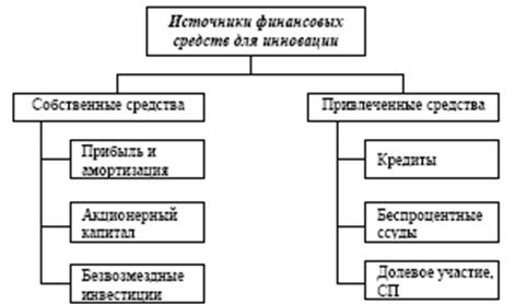 Инвестирование инновационной деятельности может осуществляться как за счет собственных, так и привлеченных средств. Для российских предприятий в настоящее время основным источником инвестиций являются собственная прибыль и амортизационные отчисления. Кроме того, инвестиционный фонд для инновационной деятельности может пополняться безвозмездными вложениями в натуральной форме или в виде спонсорской финансовой помощи.