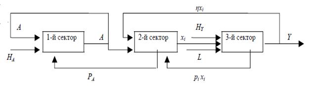 В качестве примера можно рассмотреть одну из таких моделей, предложенных П. Ромером. Ромер разделяет экономику на три основных сектора (рис. 16).