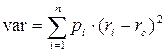 Количественной оценкой риска той или иной инновации принято считать вариацию var - разброс возможных результатов инновационной операции относительно ожидаемого значения (математического ожидания). Этот показатель рассчитывается как среднее квадратичное отклонение от ожидаемого результата: