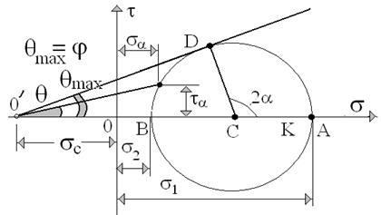 Таким образом, учитывая условие (5.5), состояние предельного равновесия наступает только тогда, когда круг напряжений касается прямой, проведенной из точки