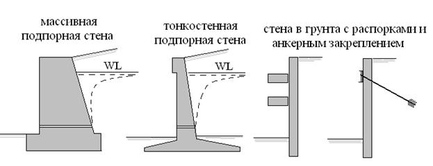 Рис. 7.1. Подпорные стены и шпунтовые ограждения