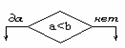 2. Базовая структура ветвление. Обеспечивает в зависимости от результата проверки условия (да или нет) выбор одного из альтернативных путей работы алгоритма. Каждый из путей ведет к общему выходу, так что работа алгоритма будет продолжаться независимо от того, какой путь будет выбран.