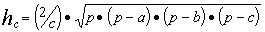 Пример. Составить блок-схему алгоритма определения высот ha, hb, hc треугольника со сторонами a, b, c, если