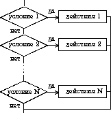 3) выбор выбор при условие 1: действия 1 при условие 2: действия 2............ при условие N: действия N конец выбора