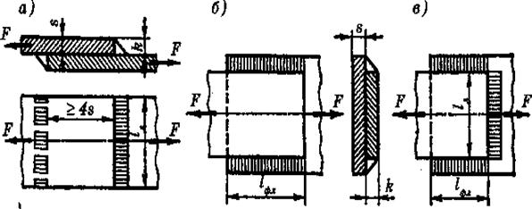 б) фланговые, расположенные параллельно линии действия нагрузки (рисунок 2.3, б);