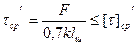 Расчетная высота опасного сечения шва равна ksin45° = 0,7 k.