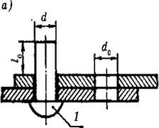 Для образования замыкающей головки выступающий конец заклепки (рисунок 3.1, а) должен выходить из отверстия детали на длину
