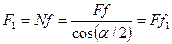 Окружная сила трения для витка прямоугольного профиля Для витка треугольного профиля F1=Nf