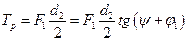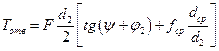 Для определения движущей окружной силы в треугольной резьбе можно пользоваться выведенной формулой для прямоугольной резьбы, подставив вместо действительного приведенный угол трения.