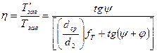 Учитывая потери только в резьбе (ТT = 0), найдем КПД только винтовой пары: