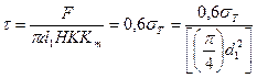 Если материалы винта и гайки одинаковы, то по напряжениям среза рассчитывают только резьбу винта, так как d1< d.