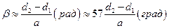 практически не превышает 15°, приближенно принимаем значение синуса равным аргументу, тогда запишем