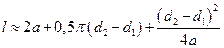 Длина ремня определяется как сумма прямолинейных участков и дуг обхвата: