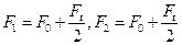 На рисунке 8.5 показано нагружение ветвей ремня в двух случаях: T1 = 0 (рисунок 8.5, а)и Т1 > 0 (рисунок 8.5, б). Принятые обозначения: F0 – предварительное натяжение ремня; F1 и F2 – натяжение ведущей и ведомой ветвей в нагруженной передаче;