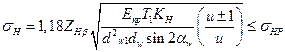 Расчет зубьев по контактным напряжениям. Для косозубых колес удельная нагрузка с учетом формул (11.23) и (11.24)