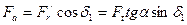 Силы в зацеплении прямозубой конической передачи. По нормали к поверхности зуба действует нормальная сила Fn, которую раскладывают на окружную силу Ft, радиальную силу Fr и осевую силу Fa. Зависимость между этими силами можно увидеть на рисунке 11.14, где силы приложены к шестерне. Вначале силу Fn раскладывают на Ft и F'r (см. сечение зуба на рисунке 11.14). Затем F'r раскладывают на Fа и Fr (на рисунке 11.14 в зоне зацепления). В результате получим следующие зависимости для шестерни