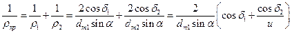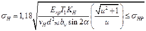 Расчет прямозубой конической передачи на контактную прочность. Для конических колес ρпр в формуле (1.4) определяют по радиусам эквивалентных колес. По формулам (11.40), для среднего торцового сечения зуба получим
