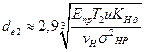 Для проектного расчета формулу (11.44) преобразуют. Считают, что основными габаритными размерами для конических передач являются de2 и Re, а нагрузка является моментом Т2 на ведомом валу. После введения этих параметров и некоторых преобразований получают