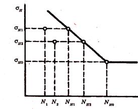 , продолжая работать до разрушения при числе циклов NHl, или при напряжении σН2, продолжая работать до числа циклов N2=