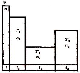 где Тi – крутящие моменты, которые следует учитывать при расчете на усталость; Ттax – максимальный из моментов (на рисунке 11.18 Ттах = T1); пi., ti. – соответствующие моментам Тi. частоты вращения и время работы.