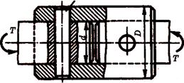 Муфта втулочная. Соединение втулки с валами выполняют с помощью цилиндрических штифтов (рис. 15.3), сегментных шпонок (рис. 15.4) или шлицевого соединения. Втулочные муфты применяют в легких машинах при диаметрах валов до 60... 70 мм. Они характеризуются простотой конструкции и малыми габаритами. Прочность муфты определяется прочностью штифтового, шпоночного или шлицевого соединения, а также прочностью втулки. Методика соответствующих расчетов изложена в 4.3 и 5.1.