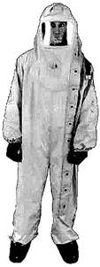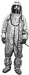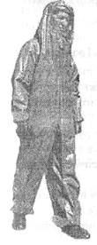 | Изолирующий костюм ИЕ-1 Обеспечивает защиту кожных покровов и органов дыхания от воздействия паров, аэрозолей и капель 1,4-дихлорбутена-2. Костюм состоит из комбинезона и резиновых перчаток. Комплект упакован в сумку из прорезиненного материала. Надевается костюм поверх летней или зимней табельной спецодежды. Подача воздуха для дыхания осуществляется от стационарного источника или шланговых противогазов ПШ-1 или ПШ-2. После эксплуатации костюм подвергается дегазации с последующей просушкой и проветриванием на воздухе. Время защитного действия от паров, аэрозолей и капель 1,4-дихлор-бутена-2 - 1 час. Время непрерывной работы средней тяжести в сочетании с противогазом ПШ-1 или ПШ-2 от 4 до 6 часов. Костюм может быть использован многократно, при этом его защитные свойства не снижаются. |