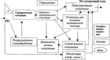 Рис. Принципиальная схема двухэтапной системы лечебно-эвакуационного обеспечения пораженных (