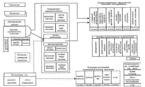 Многопрофильные больницы (МПБ) развертываются в загородной зоне силами ЦРБ, а также республиканских, краевых, областных и городских больниц, эвакуируемых согласно плановых заданий в соответствующие сельские районы. Основным назначением МПБ является оказание в полном объеме квалифицированной и специализированной медицинской помощи пораженным, раненым и больным, с учетом профиля и характера травмы (хирургическая, терапевтическая, психическая и т.д.). При необходимости МПБ развертывает сортировочную площадку для распределения пораженных по функциональным подразделениям (рис.).