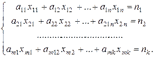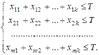 Обозначим хij – время, в течение которого станок Si будет занят изготовлением продукции Рj (i = 1, 2,..., т; j = 1, 2,..., k).