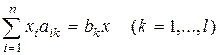 Задача о раскрое материалов. На раскрой (распил, обработку) поступает материал одного образца в количестве а единиц. Требуется изготовить из него l разных комплектующих изделий в количествах, пропорциональных числам b 1, b 2, …, bl (условие комплектности). Каждая единица материала может быть раскроена п различными способами, причем использование i -го способа (i = 1, 2,..., п) дает аik единиц k -го изделия (k = 1,2,..., l).