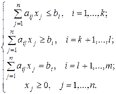 Любая задача линейного программирования может быть сведена к каноническому виду. Для этого во все ограничения-неравенства необходимо ввести дополнительные переменные xn+i, положив: