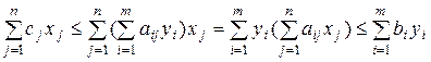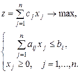 рассмотрим понятие двойственности на примере задачи оптимального использования сырья. Пусть на предприятии решили рационально использовать отходы основного производства. В плановом периоде появились отходы сырья т видов в объемах bi единиц (i = 1 ,…, m). Из этих отходов, учитывая специализацию предприятия, можно наладить выпуск п видов неосновной продукции. Обозначим через аij норму расхода сырья i -го вида на единицу j- й (j = 1,…, п) продукции, сj – цена реализации единицы j -й продукции (реализация обеспечена). Неизвестные величины задачи: хj – объемы выпуска j- й продукции, обеспечивающие предприятию максимум выручки.
