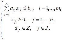 где J – некоторое подмножество множества индексов N. Если J совпадает со всем множеством индексов N, то задачу называют полностью целочисленной, если же