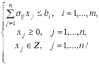 Алгоритм метода Гомори для решения полностью целочисленной задачи линейного программирования. Рассмотрим полностью целочисленную задачу линейного программирования: