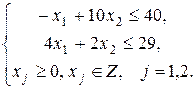Пример 4.1. В качестве примера решим следующую задачу целочисленного программирования методом Гомори: