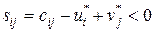 . Если хотя бы одна свободная клетка не удовлетворяет данному условию, то опорный план не является оптимальным, его можно улучшить за счет загрузки этой клетки. Если таких клеток несколько, то наиболее перспективной для загрузки является клетка, для которой разность (оценка) между тарифом клетки и суммой потенциалов наименьшая, т. е.