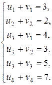 2) вычислить потенциалы поставщиков и потребителей, решив систему уравнений вида