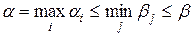– в каждом столбце находится максимальный, а среди них берется минимальный;
