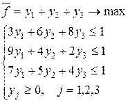 Так как игрок А стремится максимизировать цену игры v, то обратная величина 1/ v будет минимизироваться, поэтому оптимальная стратегия игрока А определится из ЗЛП следующего вида: найти минимальное значение функции