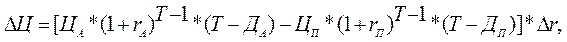 Указанные изменения связаны с длительностью актива (ДА) и пассива (ДП), а также изменениями ставки процента по данному финансовому инструменту в момент Т (период планирования).